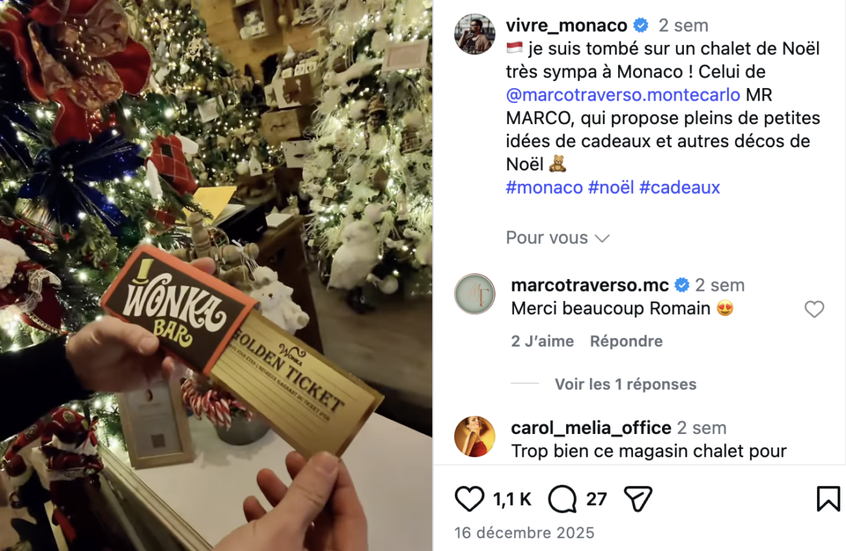 Fidèles à leur univers, Marco et Karelle Traverso ont imaginé le Chalet de MR MARCO comme une parenthèse douce et lumineuse au cœur de Monte-Carlo. Plus […]La magie de Noël au chalet de MR MARCO – Monaco Info